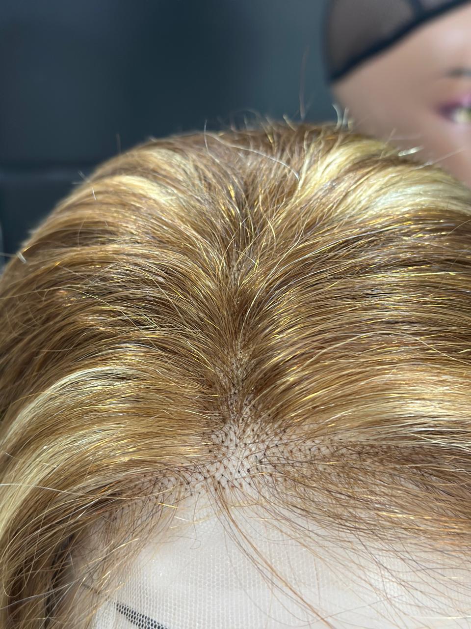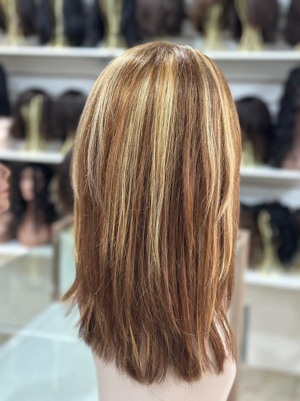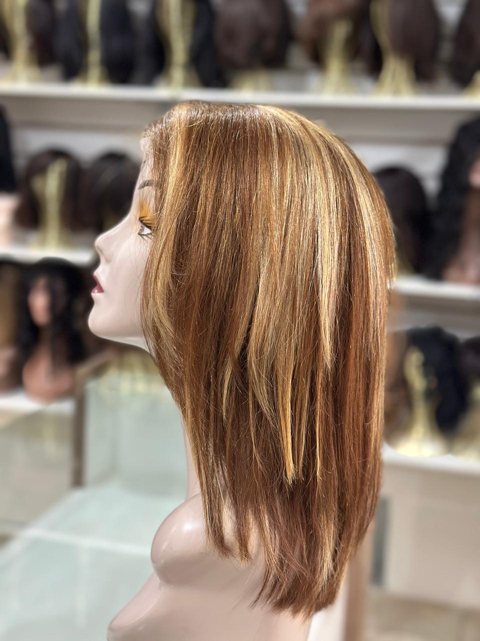 FRONT LACE COM REPARTIÇÃO LIVRE FIO A FIO , CABELO BRASILEIRO HUMANO , LOIRO ACOBREADO LISA DE 50 CM ( TOUCA COM REGULAGEM NO TAMANHO)