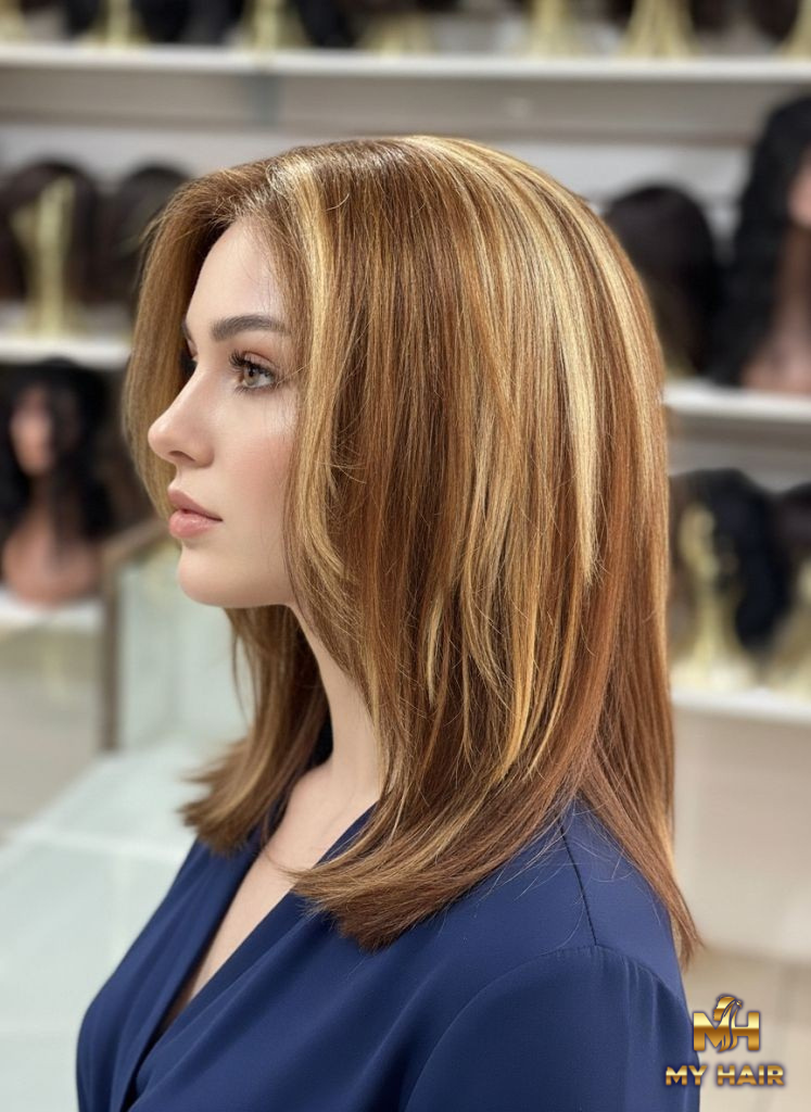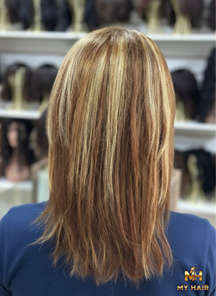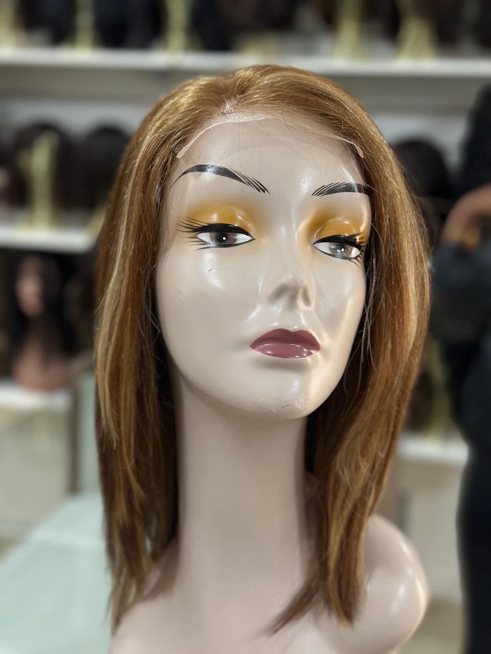 FRONT LACE COM REPARTIÇÃO LIVRE FIO A FIO , CABELO BRASILEIRO HUMANO , LOIRO ACOBREADO LISA DE 50 CM ( TOUCA COM REGULAGEM NO TAMANHO)