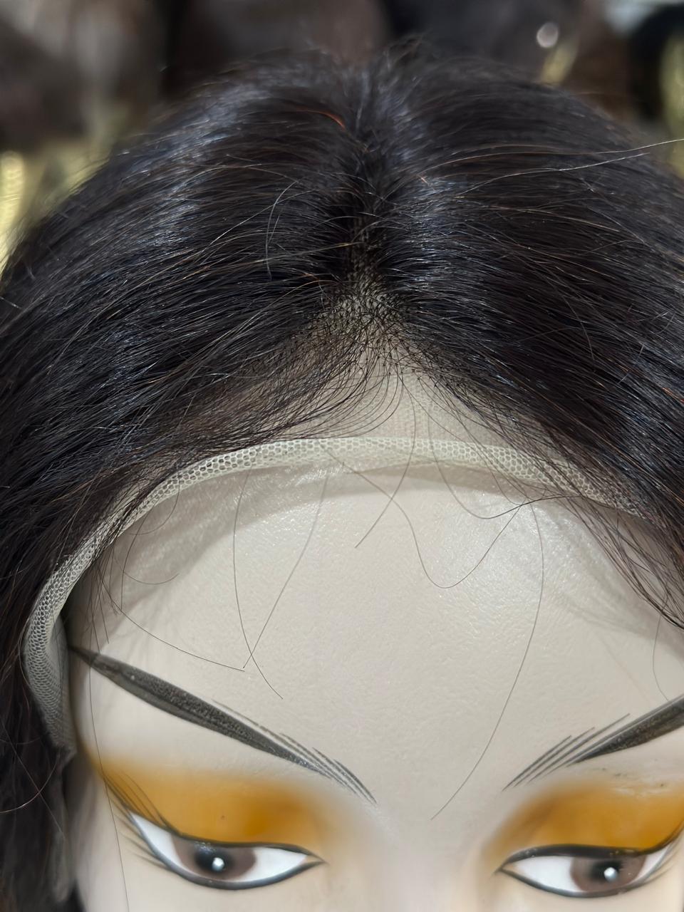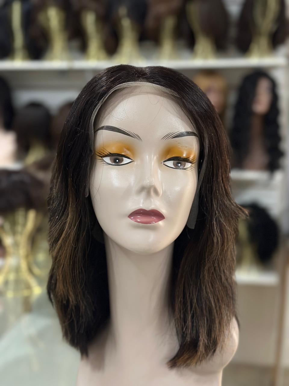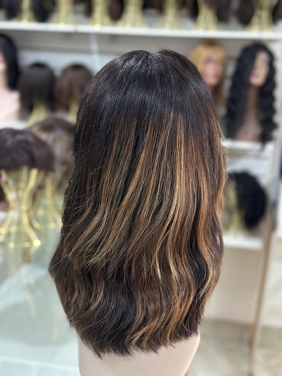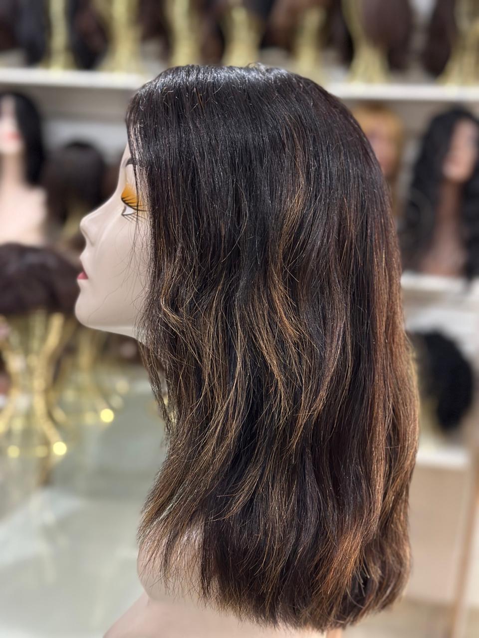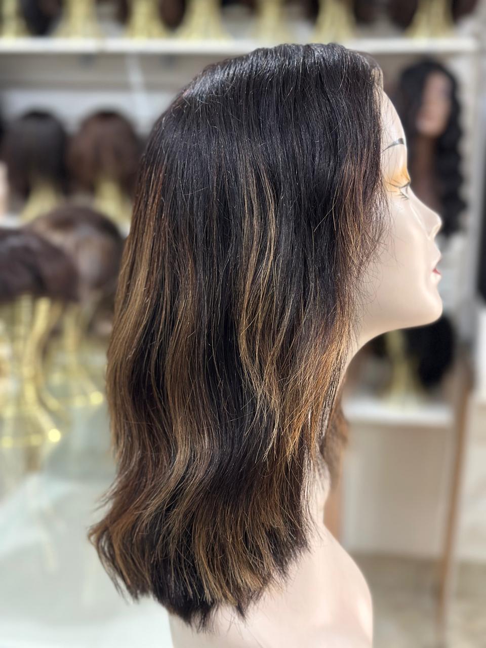 FRONT LACE COM REPARTIÇÃO LIVRE FIO A FIO , MULTIDIRECIONAL , MORENO ILUMINADA LEVE ONDAS , DE 45CM CABELO HUMANA ( TOUCA COM REGULAGEM NO TAMANHO)