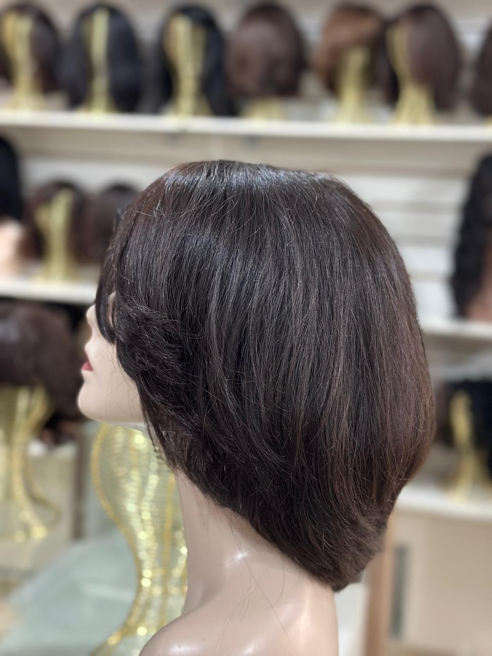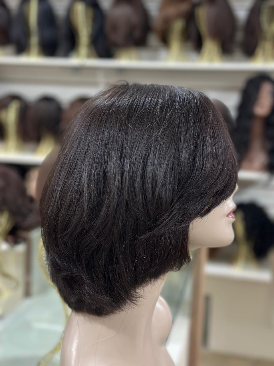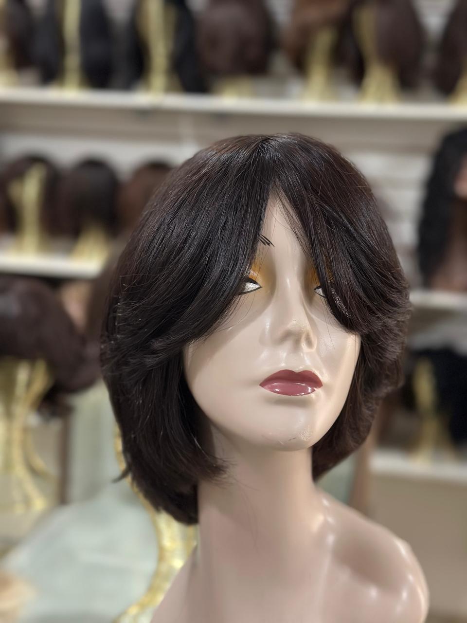 PERUCA WIG CURTA DE CABELO BRASILEIRO HUMANO , COM FRANJA , CASTANHO ESCURO DE 30 CM ( TOUCA COM REGULAGEM NO TAMANHO)