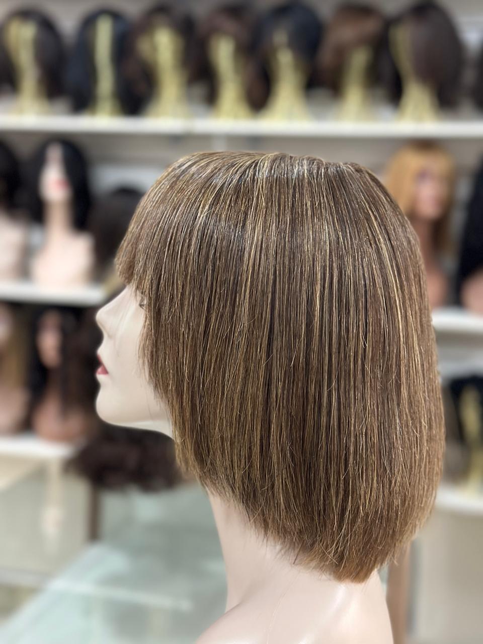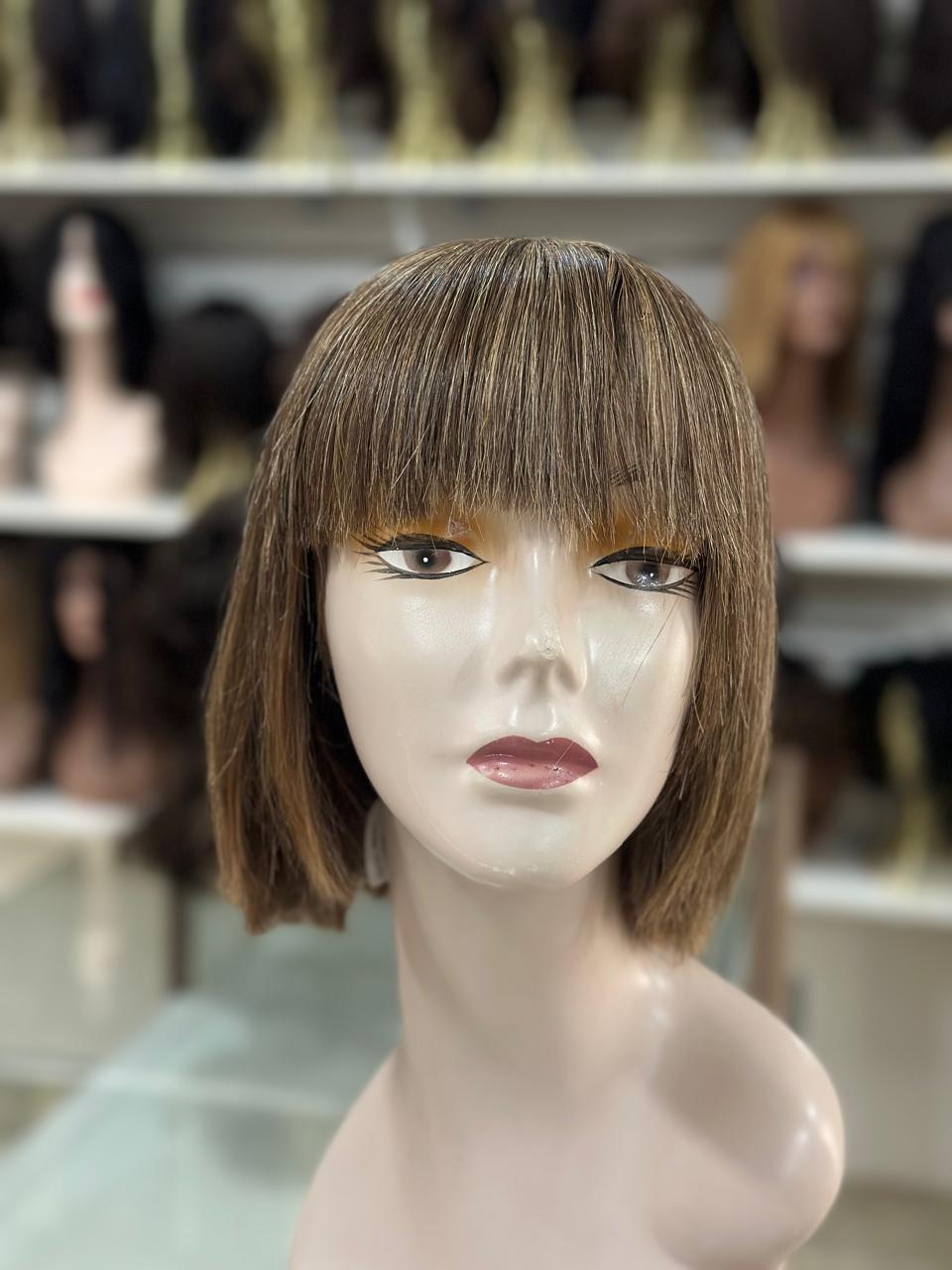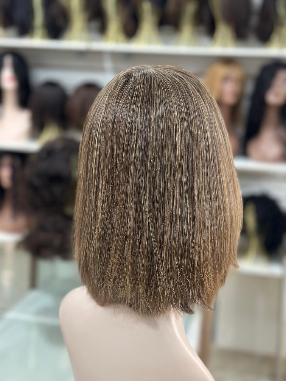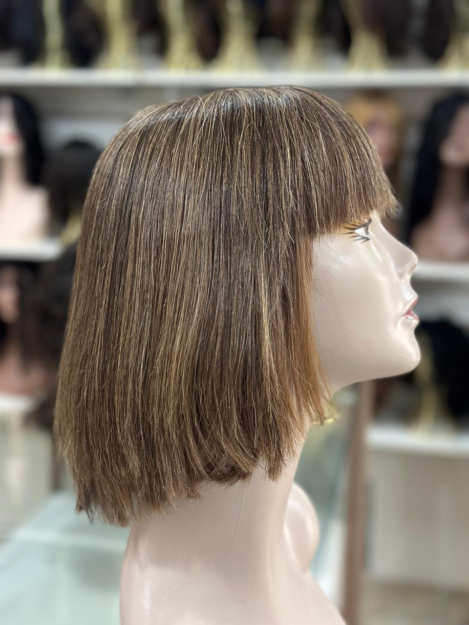 PERUCA WIG HUMANA DE CABELO BRASILEIRO , LISA COM FRANJA LOIRO MESCLADO DE 30 CM ( TOUCA COM REGULAGEM NO TAMANHO)
