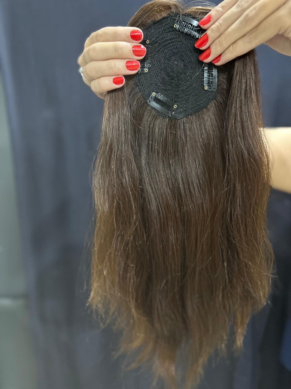 TOPO WIG DE CABELO HUMANO BRASILEIRO CASTANHO CLARO LISO 35CM