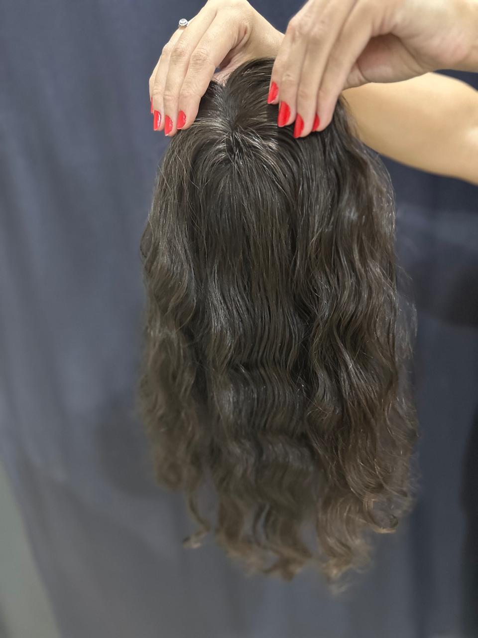 TOPO WIG DE CABELO HUMANO BRASILEIRO CASTANHO ESCURO CACHEADO 30CM