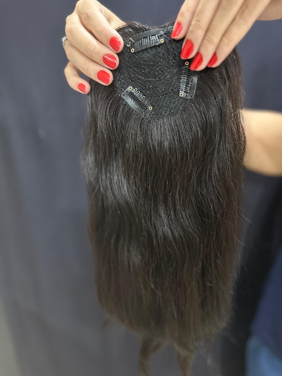 TOPO WIG DE CABELO HUMANO BRASILEIRO CASTANHO ESCURO ONDULADO 35CM